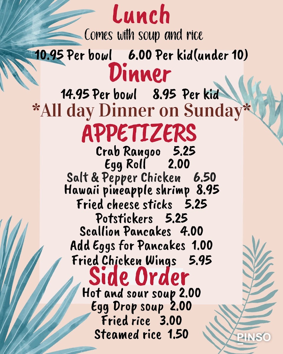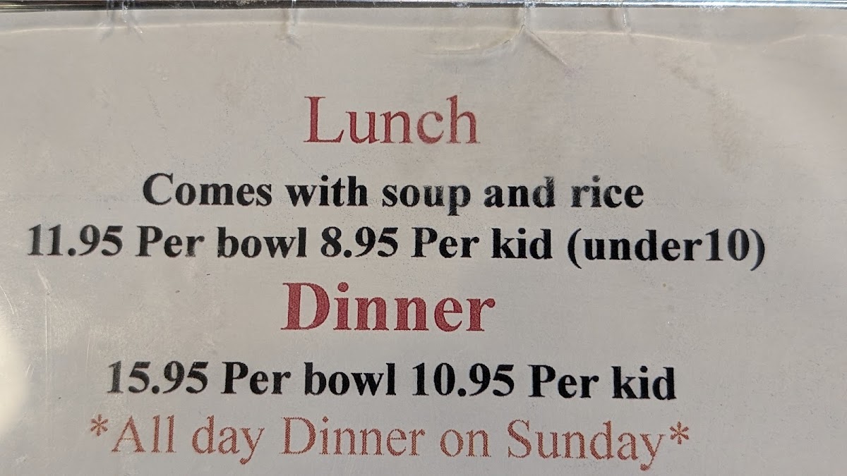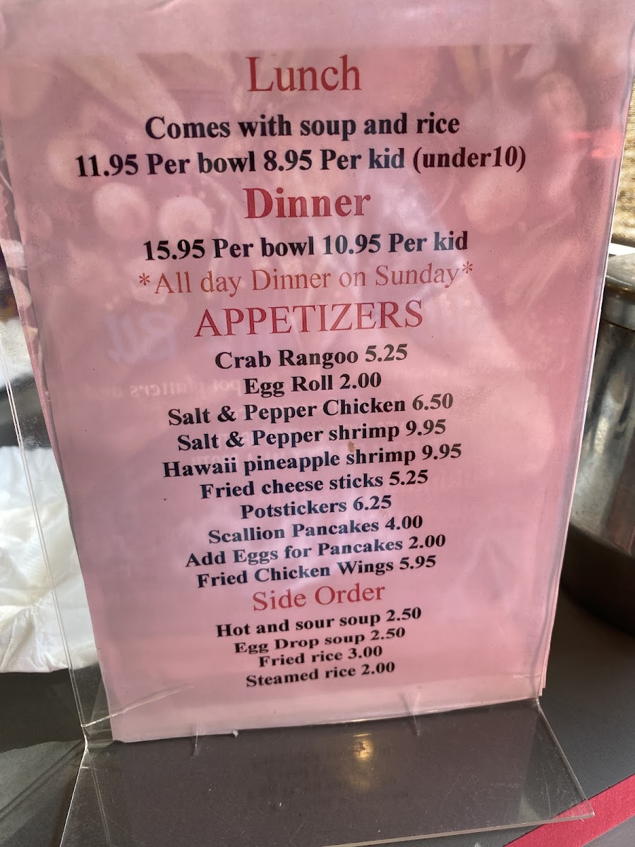 For those eager to enjoy a bit of everything, the One Bowl of Meal ($15.95) stands out as a popular choice. Load up on your favorite ingredients and enhance your bowl with dark or white sauce, creating a symphony of flavors tailored just for you. The Dinner options include choices starting at $22.95, pairing perfectly with the soothing soup and fragrant steamed or fried rice, making sure you leave with a full belly and a happy heart.